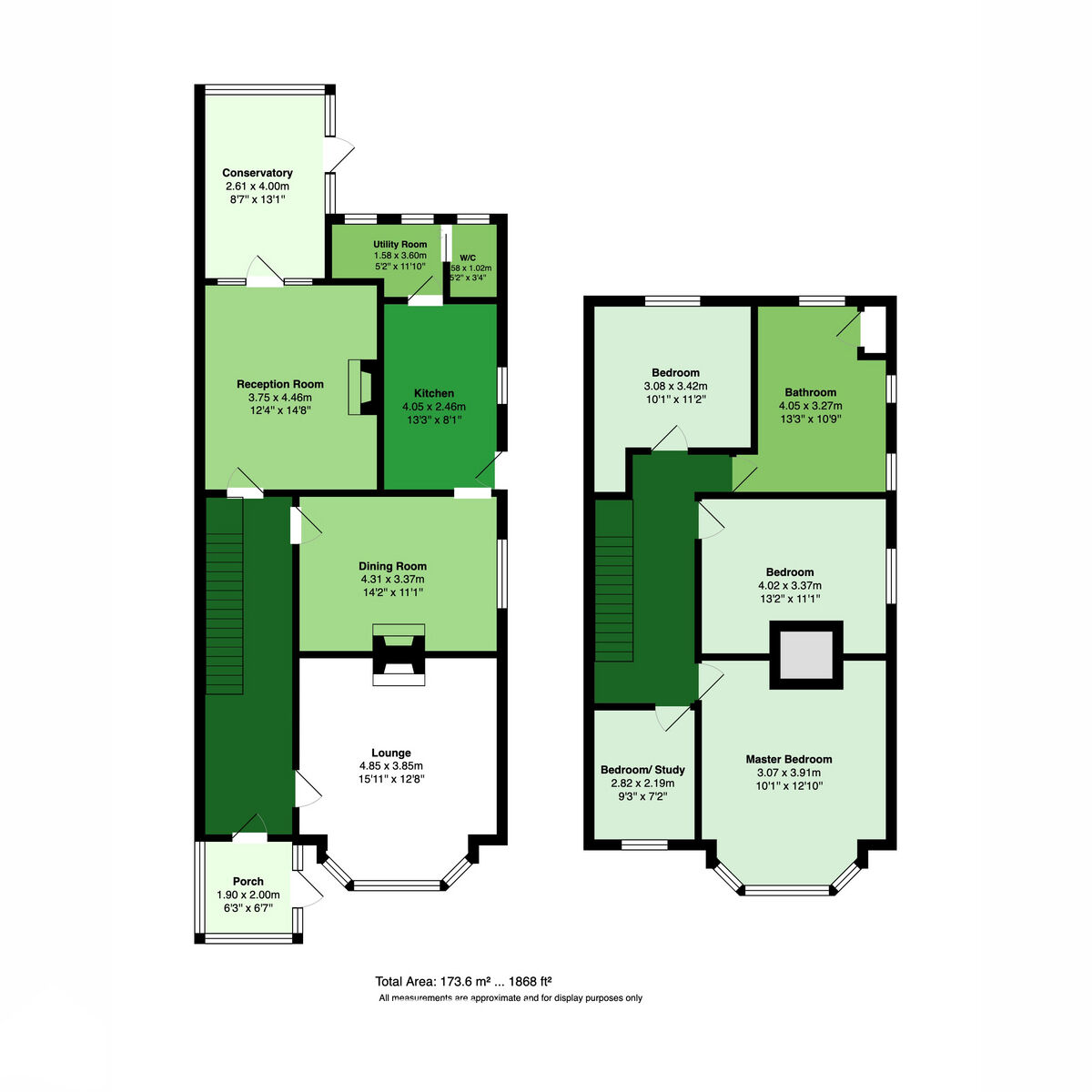 The kitchen is located in the rear right corner of the home, has good storage and layout, but is likely going to be opened up to either both or one of the other reception rooms to create an epic open-plan space. There is a utility room and wc off the kitchen to the rear.