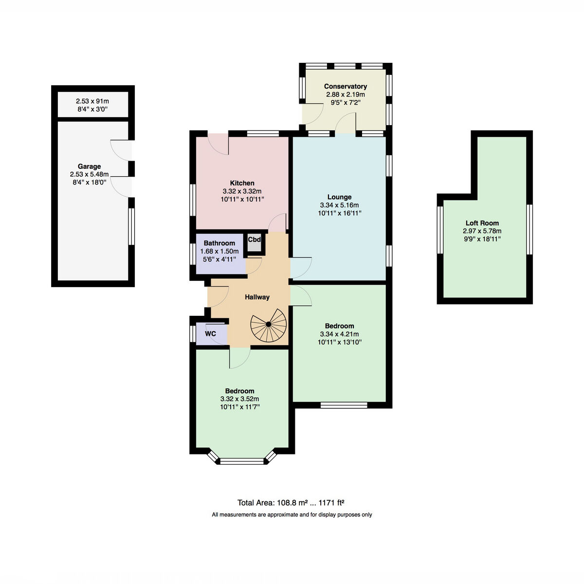 As you approach from the main road, a large driveway welcomes you, providing ample parking space for multiple vehicles. The main entrance is located to the side of the property, leading into a welcoming entrance hall. From here, you have access to a spiral staircase that ascends to the versatile loft room, ideal for use as a home office, guest space, or additional storage.