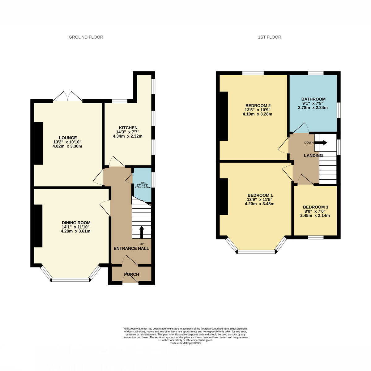On the ground floor, you’re welcomed by a compact hallway that opens into a bright and inviting reception room. A practical kitchen and a spacious, light-filled dining room provide flexible options—either could be used as your main living or entertaining space depending on your preference. A handy downstairs WC completes the ground floor.