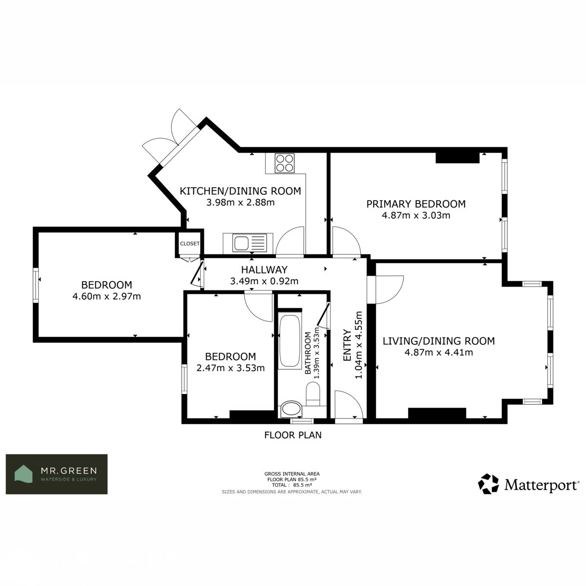 Two bedrooms are very good-sized doubles. The third is a large single or ideal home office.
