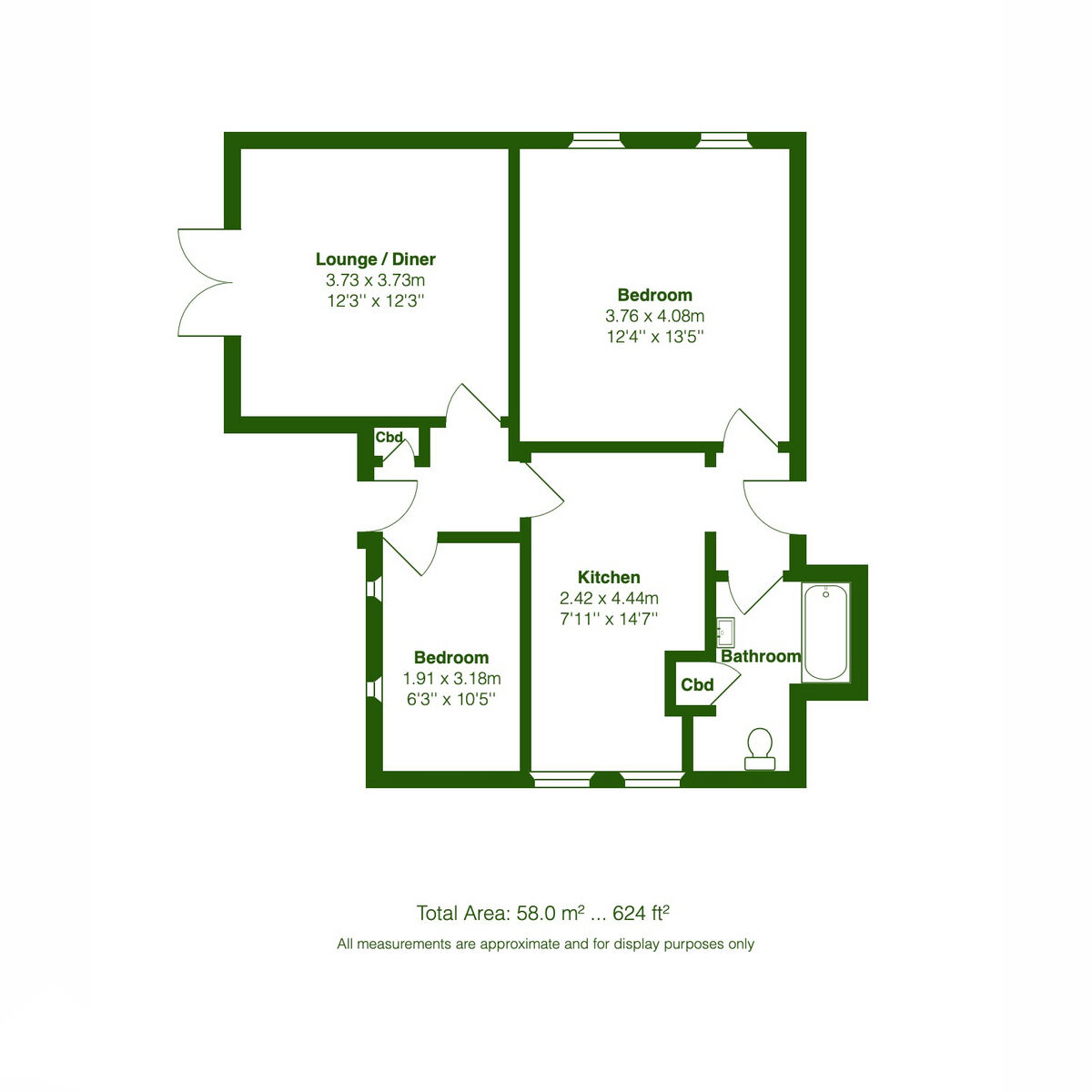 Stepping through the rear entrance door into the hallway, the lounge/diner is to the left. Patio doors give you direct access back to the garden. The lounge has an electric fireplace, adding a cosy touch for a winter evening at home. Opposite the lounge is the second bedroom which fits a small double bed or could be useful if you'd like to use it as a home working space.