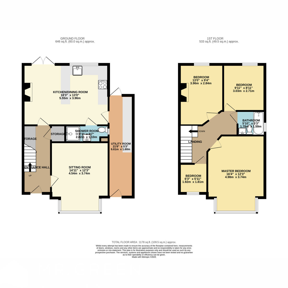 The front sitting room, measuring an impressive 4.5m x 3.7m, features a stunning bay window, creating a bright and inviting space perfect for family gatherings or cosy evenings in. The clever use of space under the stairs optimises storage, adding to the overall appeal of the room.