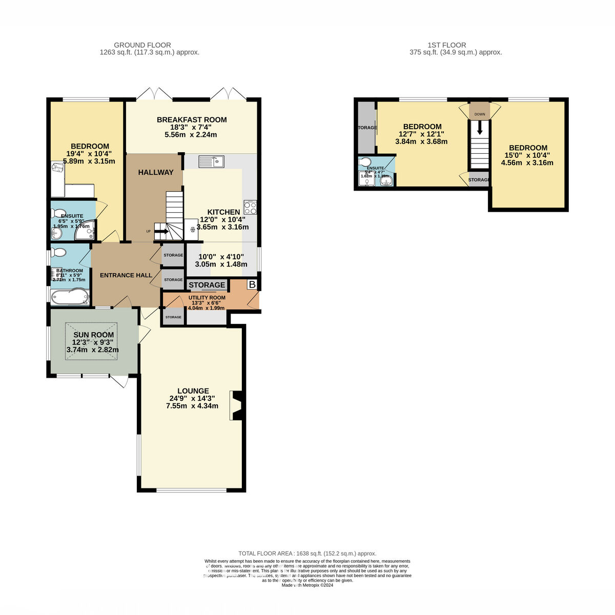 Moving through the entrance hall, the modern family bathroom awaits, featuring a sleek P-shaped bath, contemporary sink, and toilet, designed with high-quality finishes for a touch of luxury. The ground floor also hosts a spacious rear-aspect bedroom, complete with built-in wardrobes and a private ensuite shower room, perfect for a comfortable double bedroom setup.